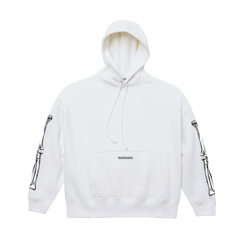 前後にはバナーロゴ、両袖に骨をプリントした1着。