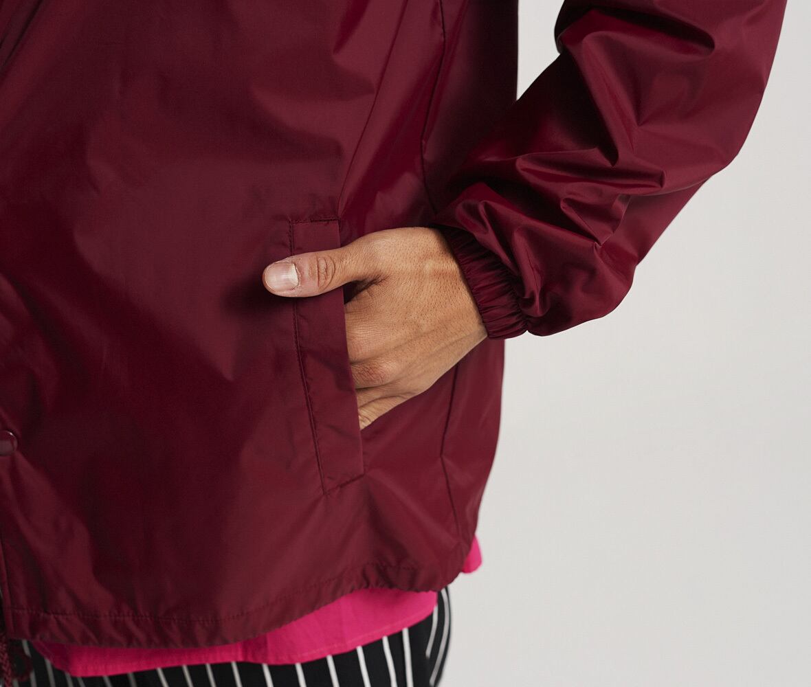 ナイロンコーチジャケット。ドットボタン・ドローコード・ステッチワークなど90年代のストリートシーンを想わせるディティールです。