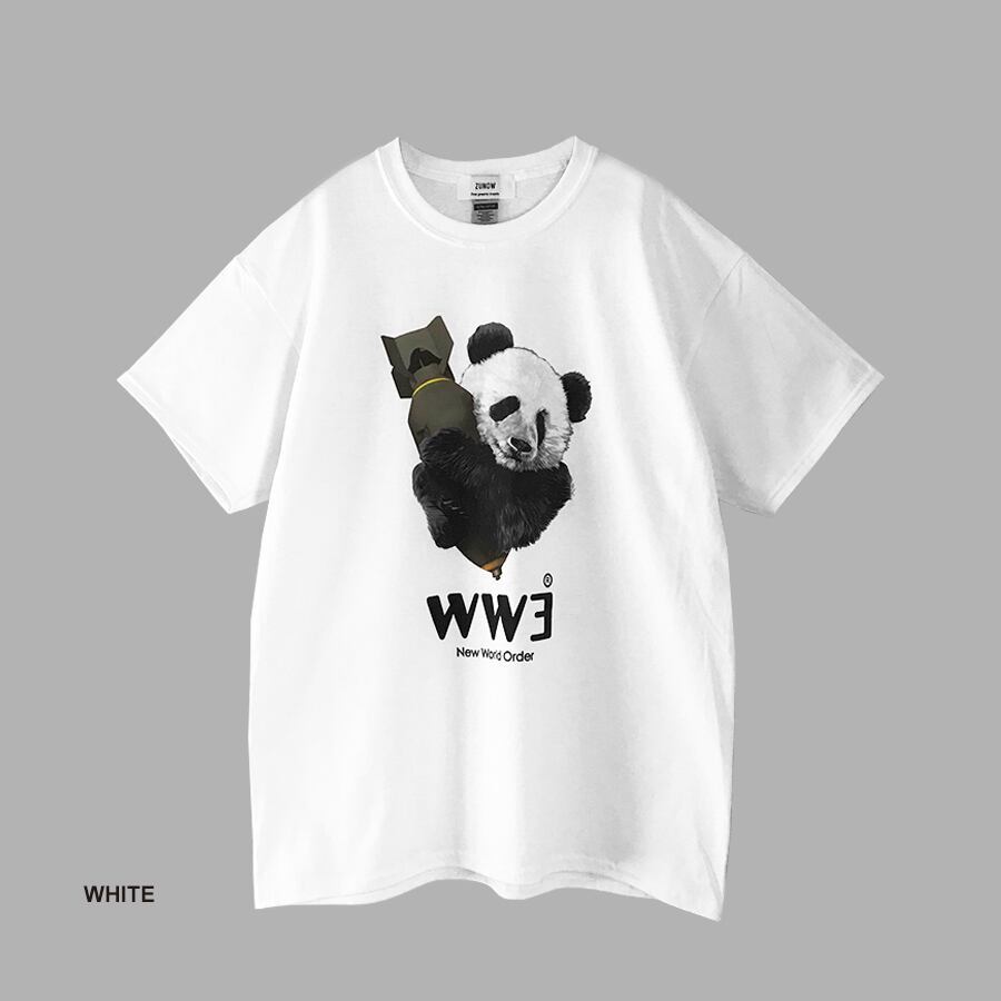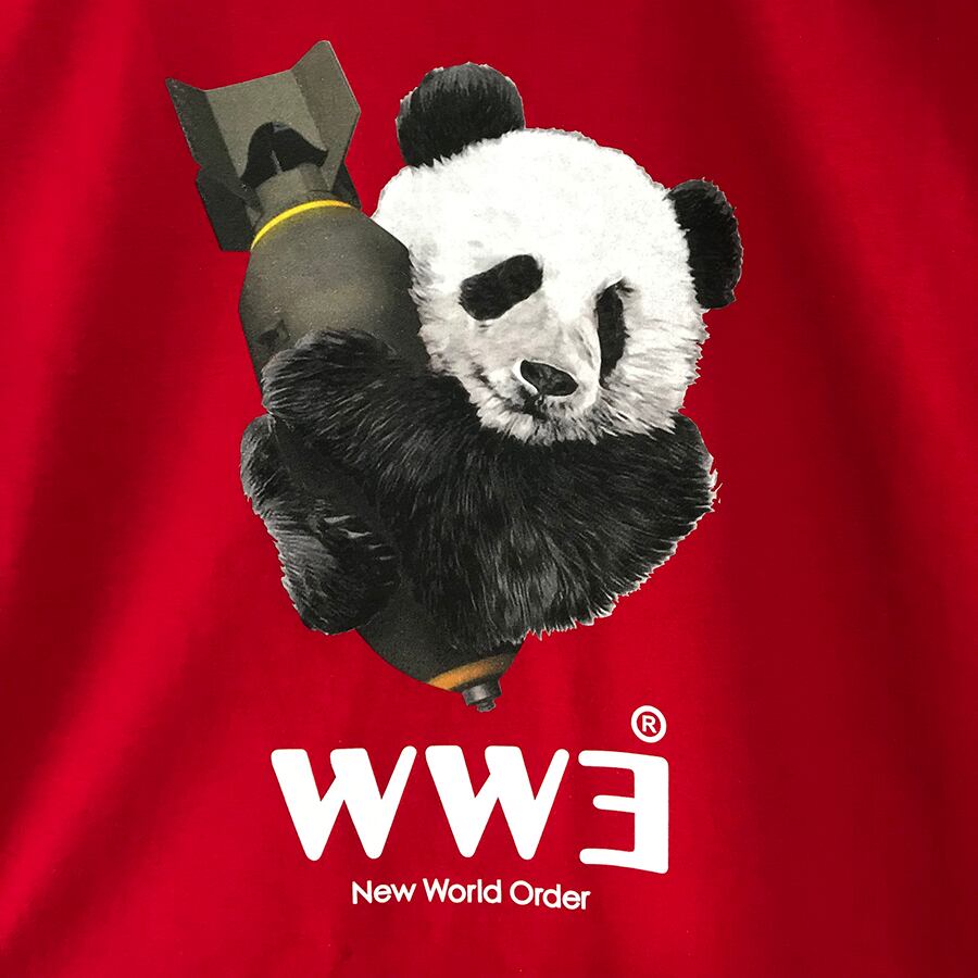 可愛いパンダが抱きしめる爆弾という構図はアイロニカルで、強いアイキャッチを生みます。